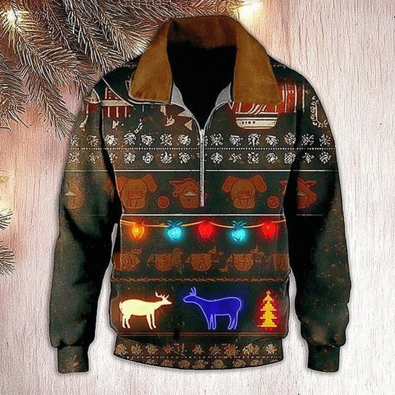 Men's Autumn and Winter Christmas Holiday Party Polo Sweatshirt 8914