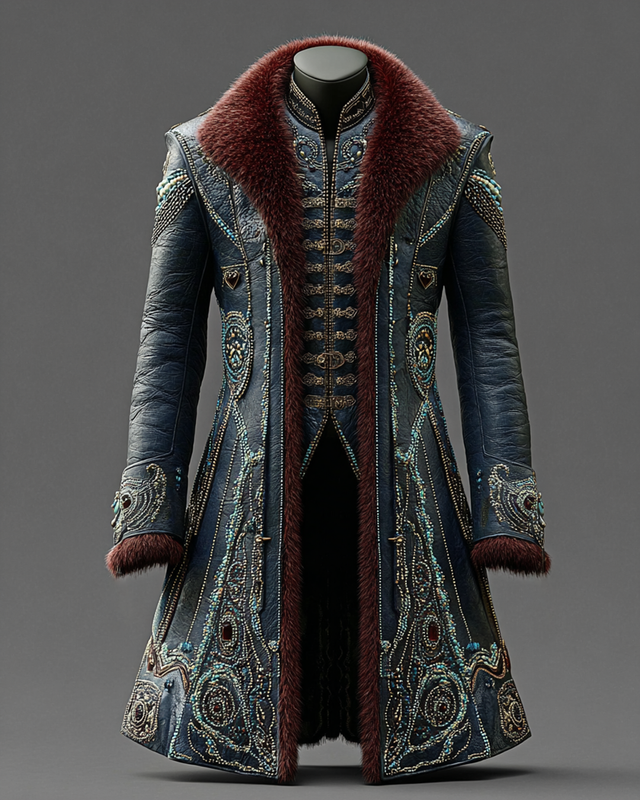 Men's autumn and winter fashion design three-dimensional embroidered fur collar coat 1975