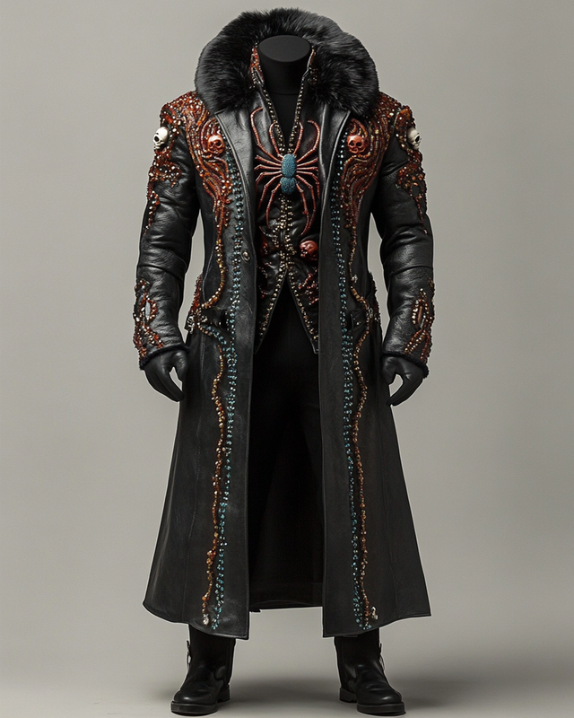 Men's autumn and winter fashion design three-dimensional skull embroidered fur collar coat 5296