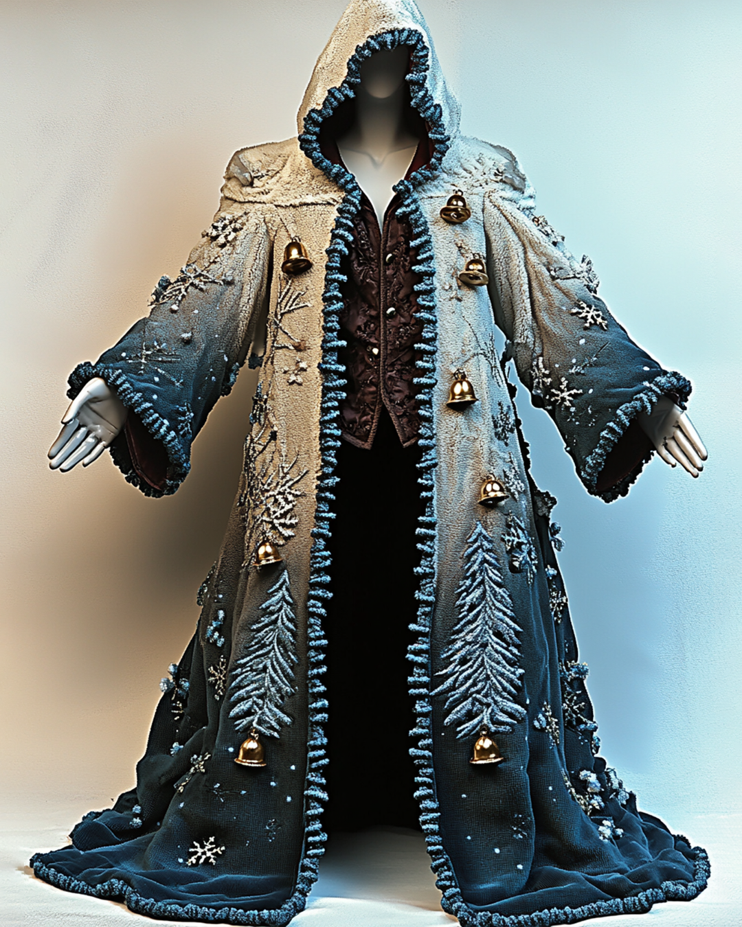 Men's Christmas Themed Gradient 3D Bell Christmas Tree Embroidered Santa Hooded Cape 2266