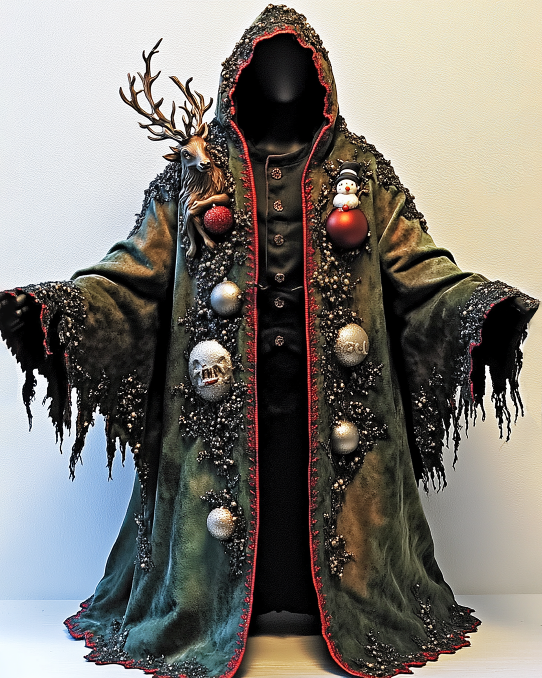 Men's Christmas Themed Gradient 3D Snowman Embroidered Hooded Cape 3528