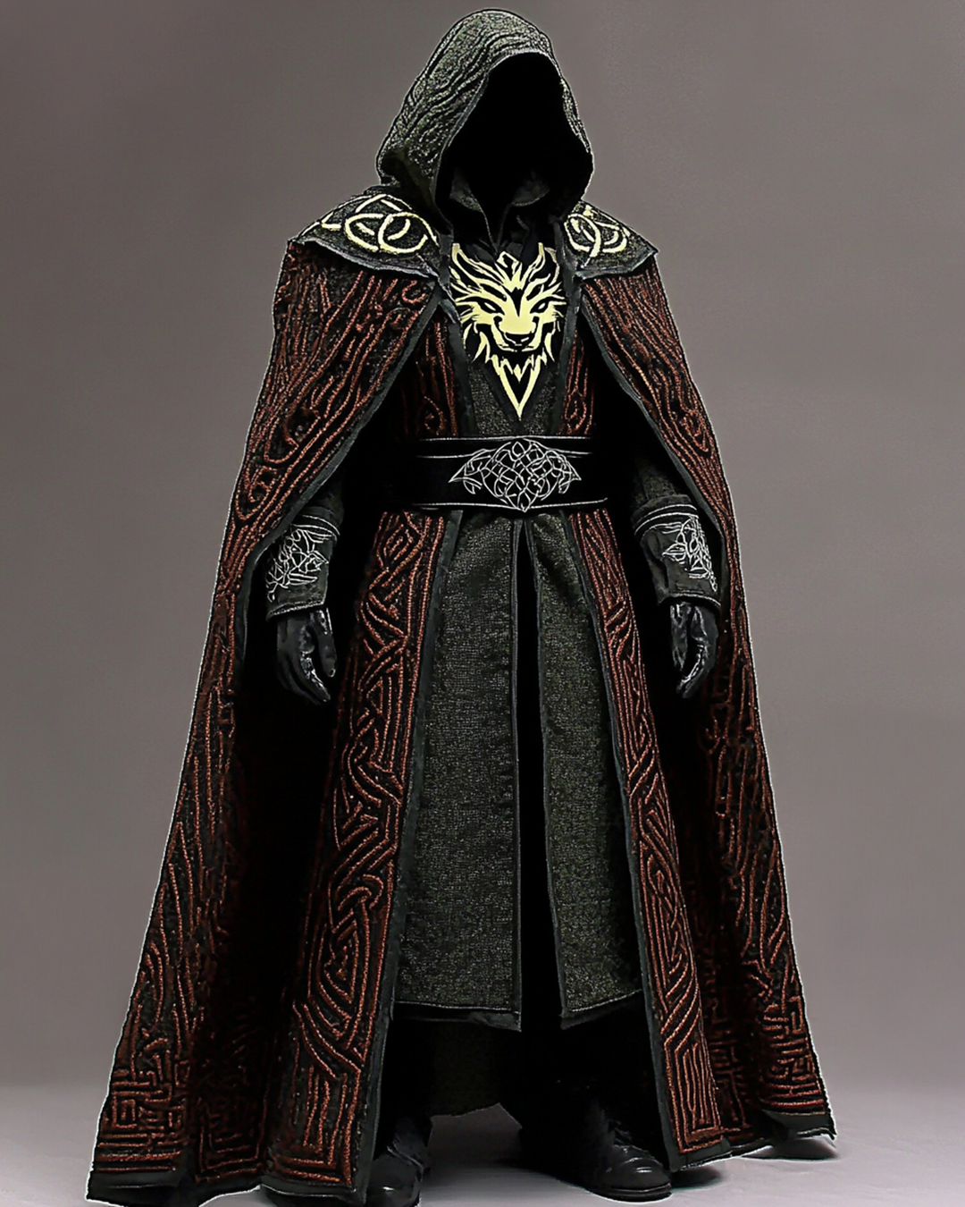 Men's Nordic Viking style wolf head embroidered cloak 7117