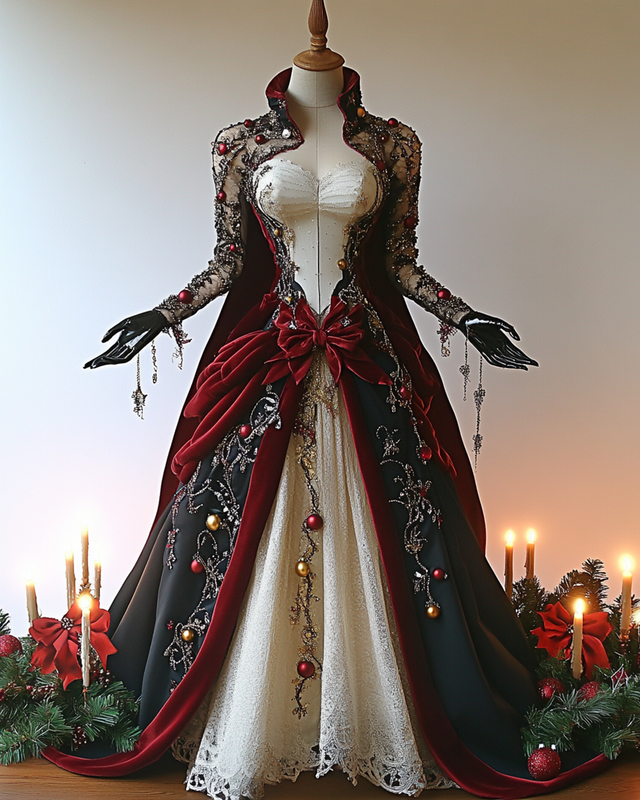 Women's Autumn and Winter Christmas Theme Embroidered Elegant Fashion Dress 9548