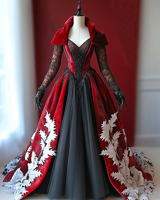 Women's Christmas themed embroidered contrast lace dress 7908