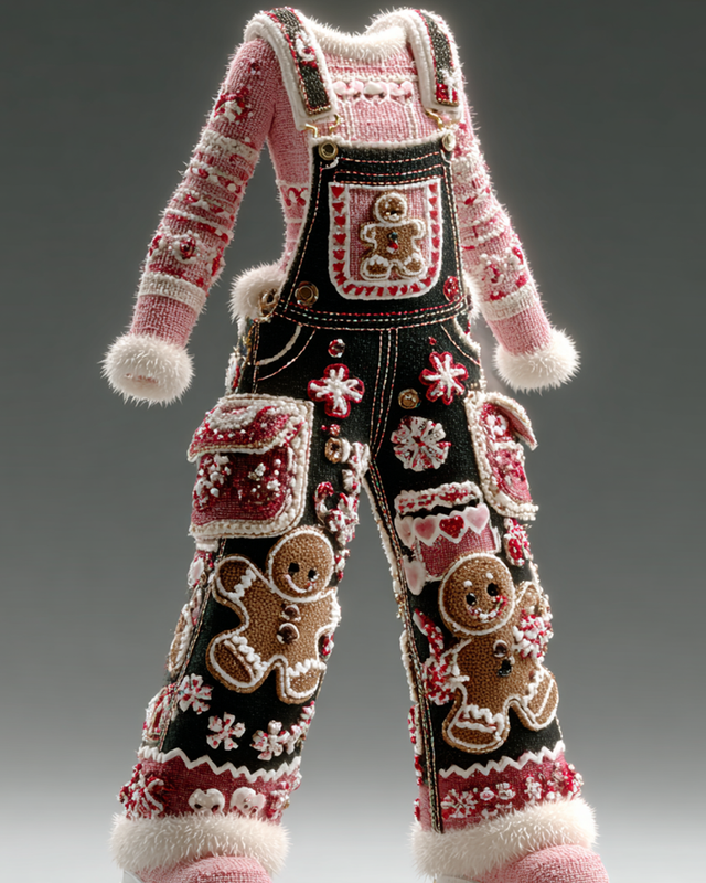 Women's Christmas-themed embroidered thickened warm overalls 4212