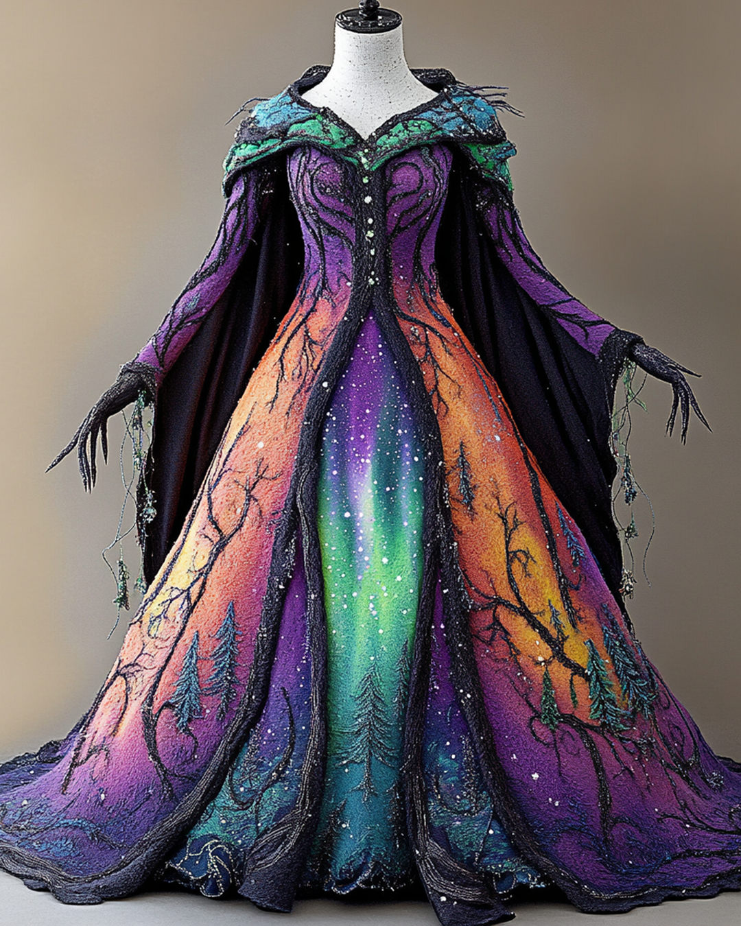 Women's Embroidered Lace Witch Gothic Hooded Dress 7446